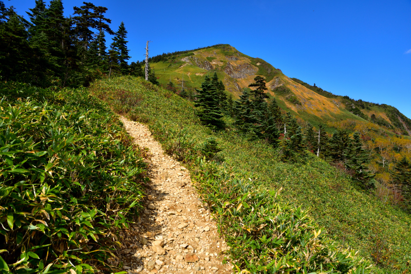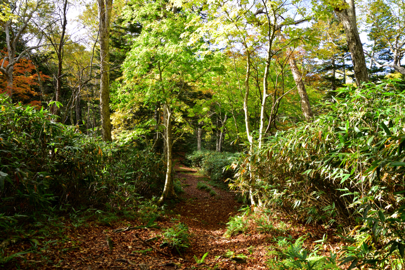 登山口(9:35) ~ アラタイ沢出合(10:04) ~ ノッキリ(11:08) ~ 岩菅山(11:41)