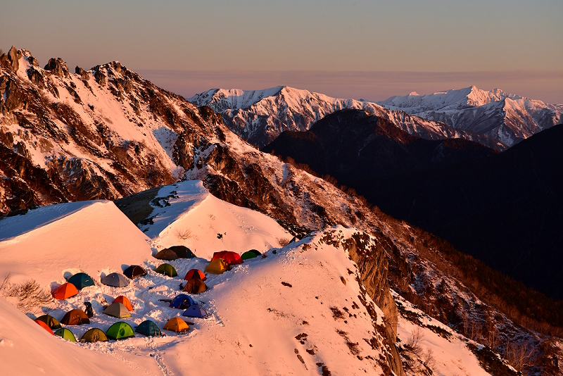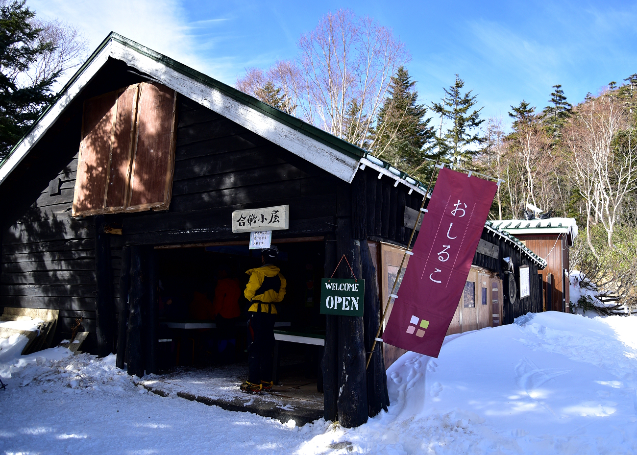 連休の為、大勢の人達が山荘の前に集合。まるで夏山のような賑わいだった。