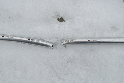 きもしたが、傷を付けると簡単に折れそうな気がしたので却下する。残ったのはアルミの二段か三段だけど、三段は以前から使っていて、コンパクトになるけど振った感じがイマイチで、ロックする部分も緩んで縮まることが多かったので、今シーズンは二段のストックで頑張ってみる。