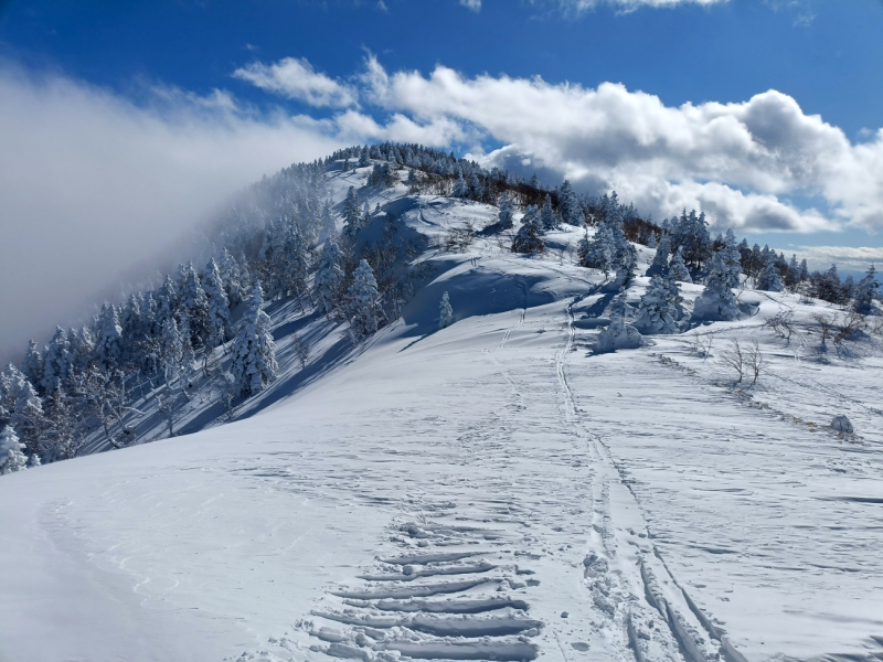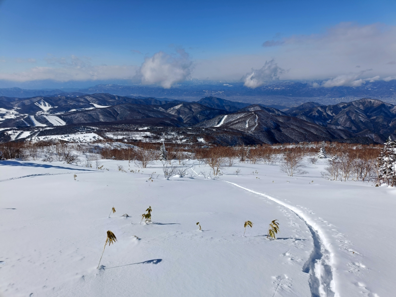 ベースが出来上がったとネットに書かれていたのでゴルフ場から根子岳に登りました。少し遅めの出発でしたが、滑る場所も残ってて、さらっと滑って帰宅。今シーズンは雪が少なくて滑れる期間も短そう。 |